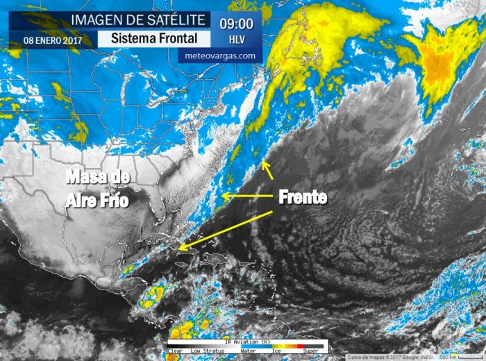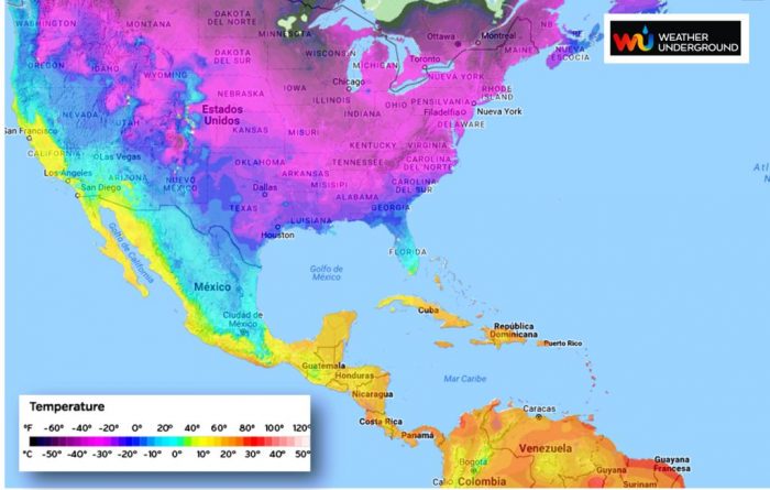 Un intenso y poderoso sistema frontal se ha prolongado hasta El Caribe. Y éste no es cualquier frente de los que hemos visto por nuestras latitudes ya que en su retaguardia viene una gran masa de aire polar que ha dejado muchas afectaciones en Norteamérica y buena porción de México con cotas de nieve considerables, temperaturas mínimas extremas, lluvias, entre otros.