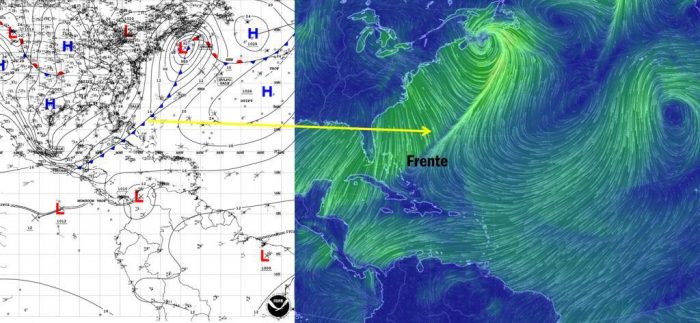 Actualmente el gran frente frío que se ha prolongado hasta El Caribe Occidental viene «empujado», por describirlo así, por ésta gran masa de aire frío que continúa descendiendo de latitud (OJO: no bajará hasta nuestro país) y por lo cual pudiera traer temperaturas frías y muy frías hasta zonas de Centroamérica, Antillas mayores e incluso hasta el Norte de Suramérica.