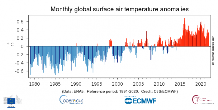 De acuerdo al informe presentado hoy por Copernicus el mes pasado ha sido el sexto enero más cálido desde que se tiene registros en 1880. Detallan en dicha publicación que durante enero de 2022, hubo temperaturas generalmente superiores a la media en toda Europa. Desde Alemania, hasta el este de Europa y Rusia, y en Escandinavia y el norte del Reino Unido e Irlanda, las temperaturas estuvieron por encima del promedio de 1991-2020.