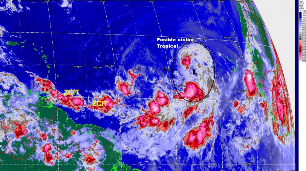 Los últimos datos de vientos prevén que la cizalladura de viento que tanto ha afectado el desarrollo de estos sistemas se mantendrá bajo, entre 5 y 10 nudos. Esto aunado a las temperatura de las aguas oscilando en los 28ºC ayudan al desarrollo del sistema, lo contrario al ambiente más hostil que enfrentó Ernesto o la DT7. Desde ya se observa una activación de la Zona de Convergencia Intertropical y el cambio del flujo zonal de vientos sobre su paso, así que podríamos estar hablando de una influencia indirecta del sistema sobre Venezuela para la próxima semana.