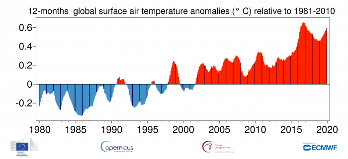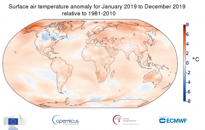 Nada de extraño ha tenido el confirmar finalmente, que el año 2019 está en los primeros tres lugares como uno de los años más cálidos registrados en la serie de datos 1981-2010. A nivel mundial, el año calendario 2019 fue 0.59°C más cálido que el promedio indicado. El período más cálido de doce meses es de octubre de 2015 a septiembre de 2016, con una temperatura de 0.66°C por encima de la norma. 2016 sigue siendo el año más cálido registrado, con una temperatura global de 0.63°C por encima de la de 1981-2010. Es así como el 2019 se ha convertido en el segundo año más cálido en este registro de datos. El tercer año calendario más cálido, 2017, tuvo una temperatura de 0,54°C por encima del promedio.