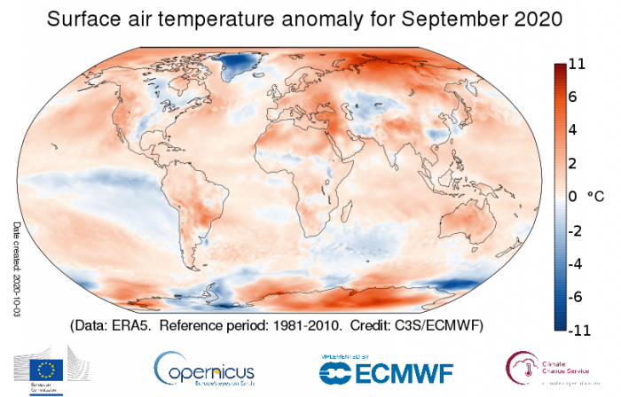Siguen los récords en 2020! A nivel mundial el pasado mes, fue el septiembre más cálido registrado, superando a su análogo más caluroso en 2019