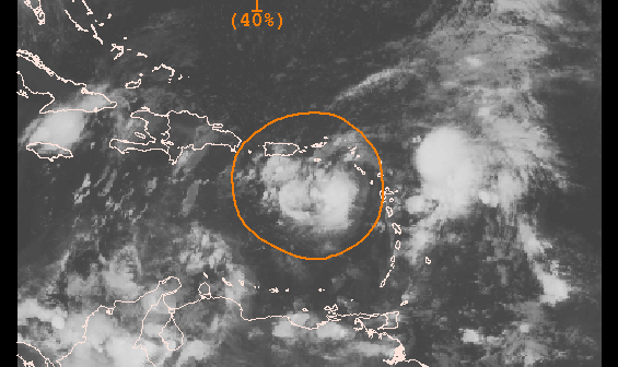 Un sistema de Baja Presión dando señales de posible organización ciclónica, se encuentra ubicado aproximadamente a 200Km al Sureste de Puerto Rico. El Centro Nacional de Huracanes le ha asignado un 40% de evolución a ciclón tropical y estima que ésto siga en aumento mientras se mueva hacia el Noroeste, recorriendo 10 millas en una hora.