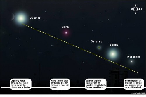 Hasta el sábado 5 de marzo de 2016, la alineación de los cinco planetas Mercurio, Venus, Marte, Júpiter y Saturno...